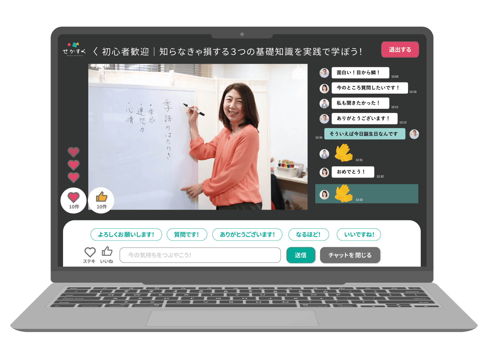 講師や参加者と会話を通じて盛り上げることができるのも特徴の一つとなっています。