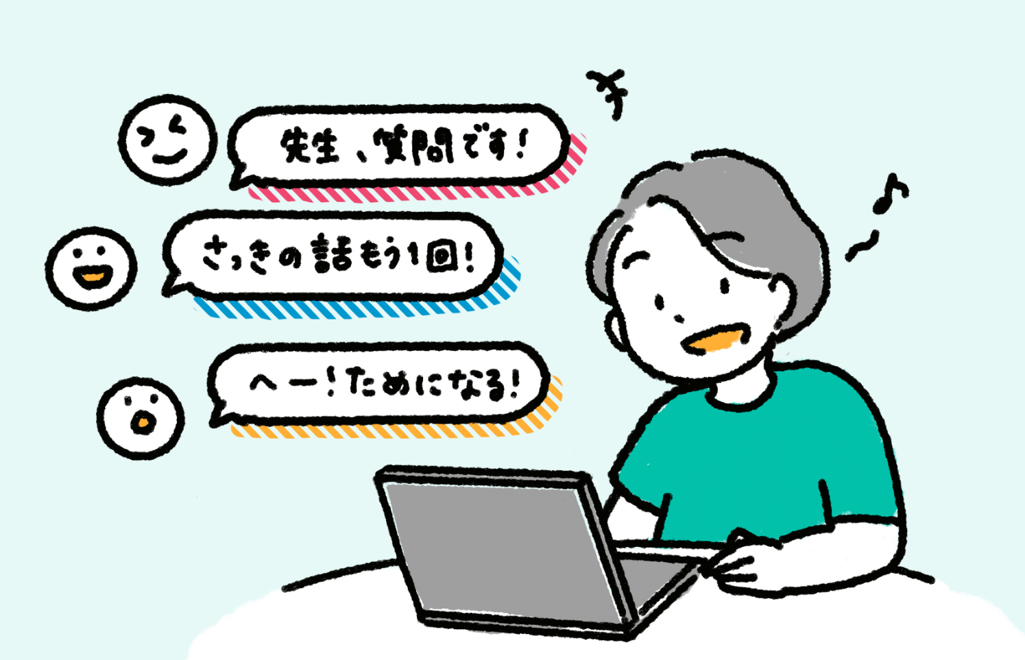 特徴1. ライブ感のある先生との掛け合いで、自然と続けられる