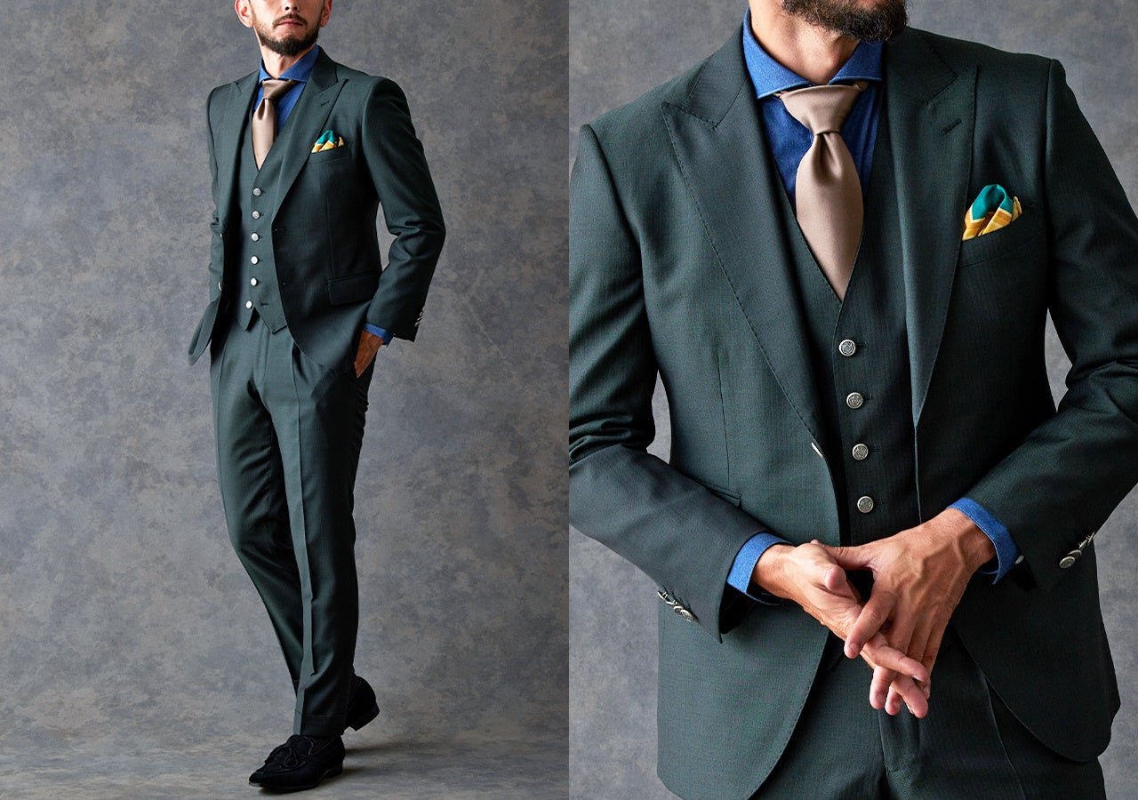 オーダースーツ専門店「GINZAグローバルスタイル」は人気のインポートブランドから《22年秋冬モノ新作》カーキ/グリーンカラーの生地を入荷!