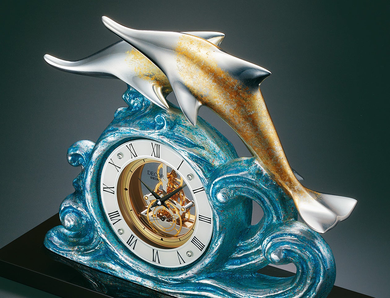 大海原を翔ける躍動感あふれる 2 頭のイルカをモチーフとした鋳造枠はデコールセイコーのためだけに制作したオリジナル作品です。