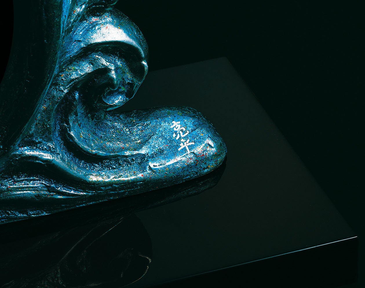 原型制作から、鋳造後の組立、彩色、蒔絵技法を用いた箔蒔きによる加飾仕上げまで、宮田亮平氏が一点一点自ら行い、サインを入れ工芸作品として完成させます。