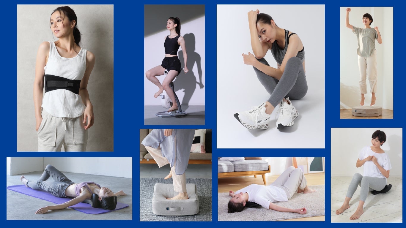 商品展示:アメイズプラスの人気商品、今村式あばラップベルト、バランスコアスニーカー2、スリムコアバイク2、シェイプキューブ2、シェイプエイト、肩甲骨はがしピロー、整体ネックポール、整体ヒップパッドの全8商品を展示いたします。