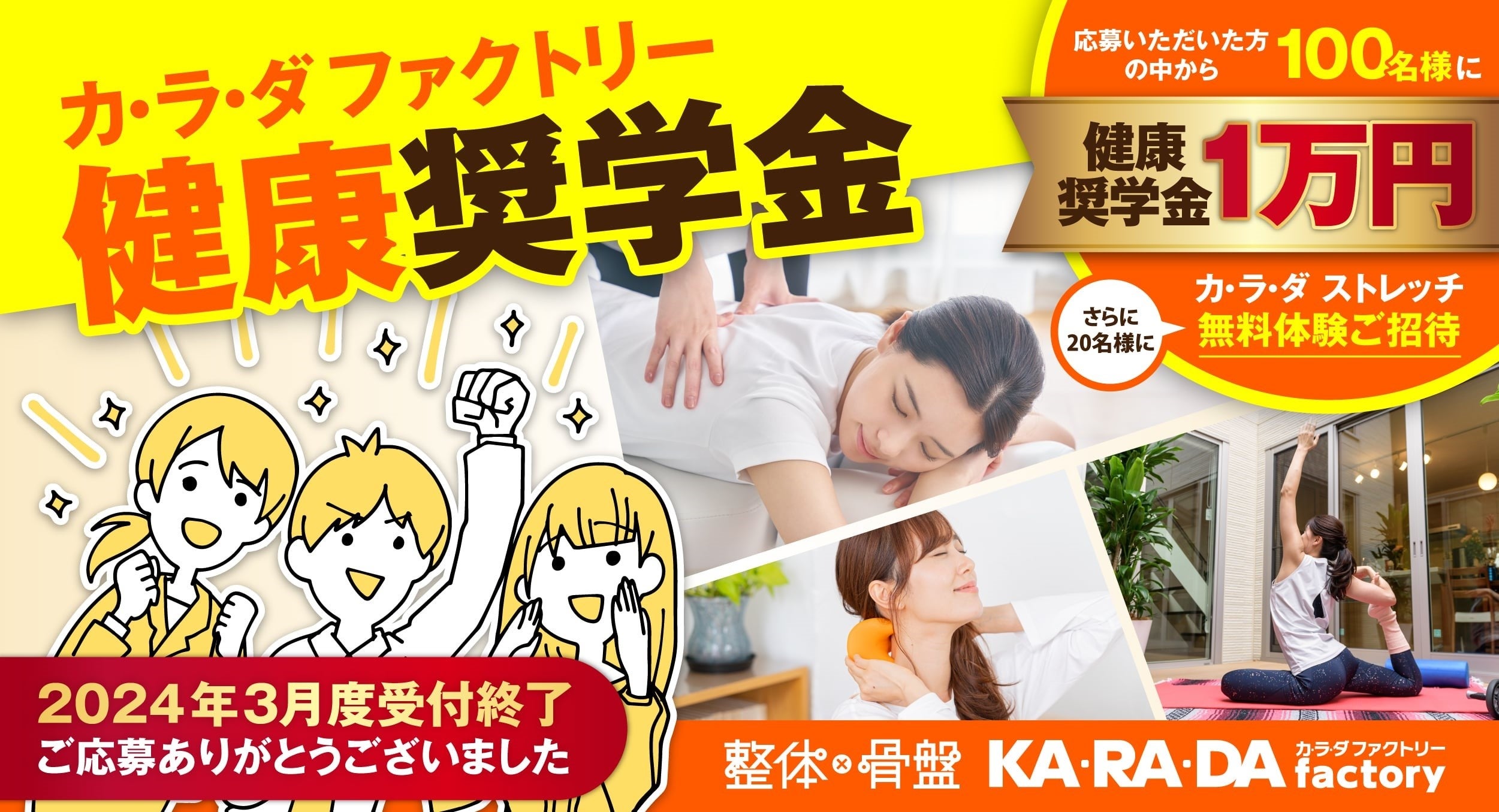 整体×骨盤「カラダファクトリー」初の「健康奨学金」実施報告 100名の枠に650人超が応募!