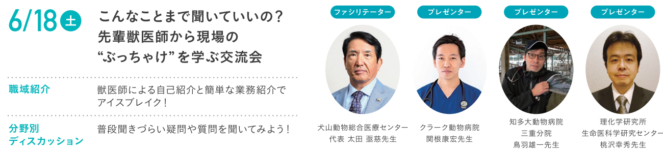 ・6月18日(土)20:00 – 22:00 こんなことまで聞いていいの?先輩獣医師から現場のぶっちゃけを学ぶ交流会