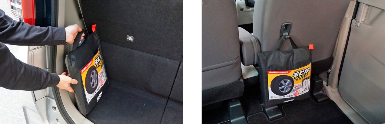 『モビルシュシュ』は、生地に厚みを持たせることで耐久性を向上させました。さらに破損の原因となるタイヤ装着時の「ヨレ」「タルミ」を抑制するため、タイヤとの適合サイズを専用設計し、タイヤとのフィッティングにこだわりました。雪路走行なら100km以上※の走破性能を有しており、緊急時の通勤使用や移動などで力を発揮します。