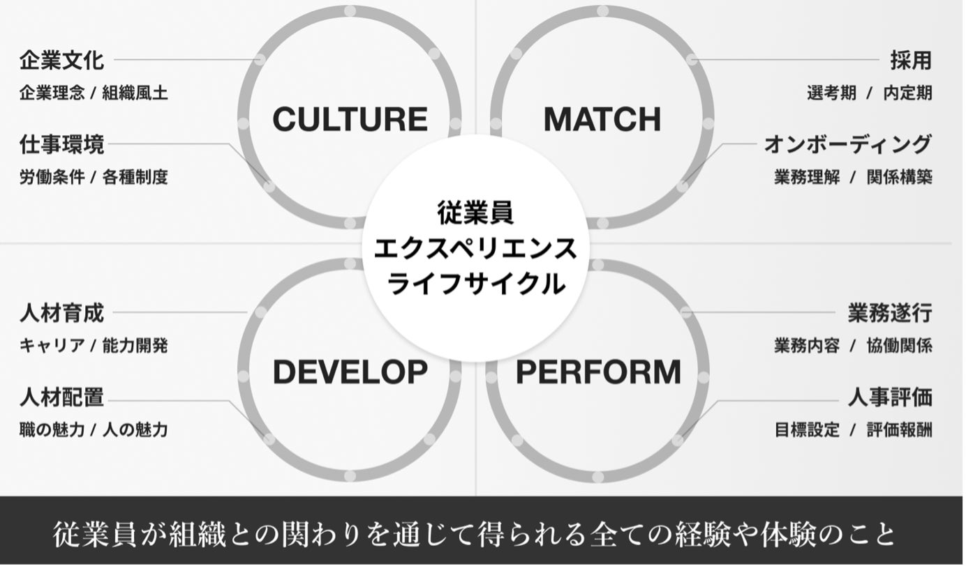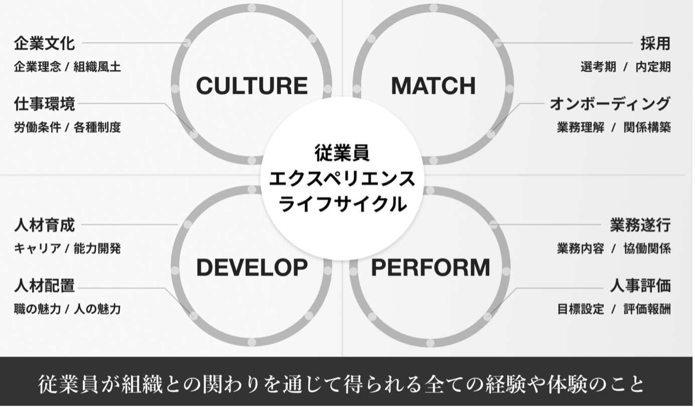 EXスコアとは、従業員の期待値と実感値をもとに算出した組織状態を表す指標です(EX=Employee Experience)。採用・オンボーディング・業務遂行・人事評価・人材育成・人材配置・仕事環境・企業文化というエンプロイージャーニーに沿って設計された16の領域において、従業員へのアンケートを実施し、データ分析します。組織や属性ごとの働きがい・働きやすさを定量的に可視化。他社比較にも対応しています。(特許出願済)