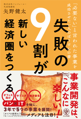 地域のパン屋さんと消費者をつなぐプラットフォームを構築する株式会社パンフォーユー(本社:群馬県桐生市 代表取締役:矢野 健太、 https://panforyou.jp/ )の代表取締役 矢野健太は、自身の経験を元にしたBizDev(事業開発)に関する初の著書『失敗の9割が新しい経済圏をつくる』が、2022年1月20日(木)にかんき出版より発売されました。