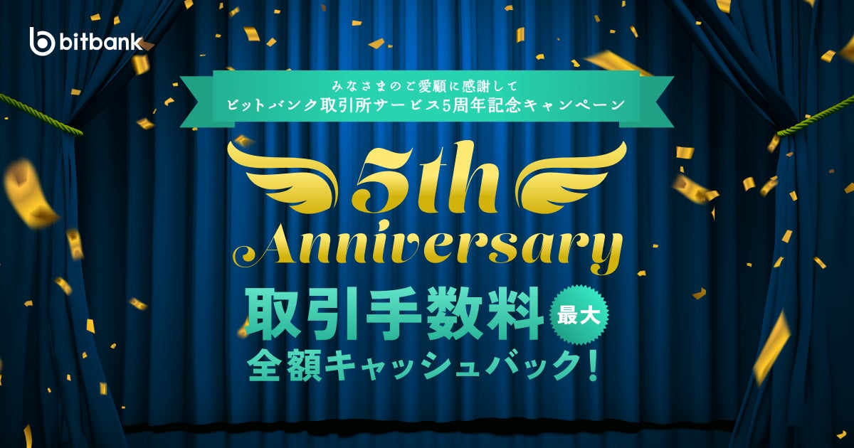 【暗号資産取引ならビットバンク】取引手数料最大全額キャッシュバック!「取引所5周年記念キャンペーン」を開催
