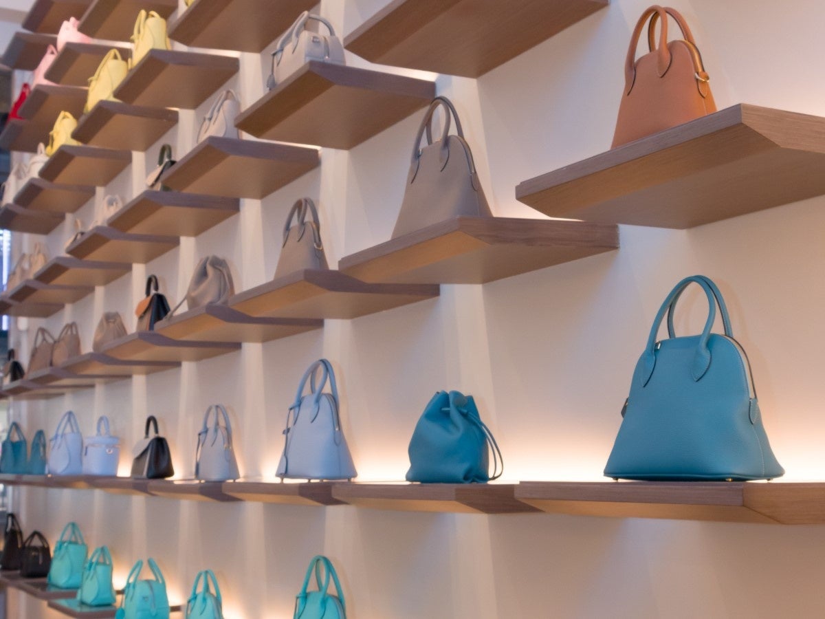 ストアに入って最初にお客様をお迎えするのは圧巻のバッグウォール。