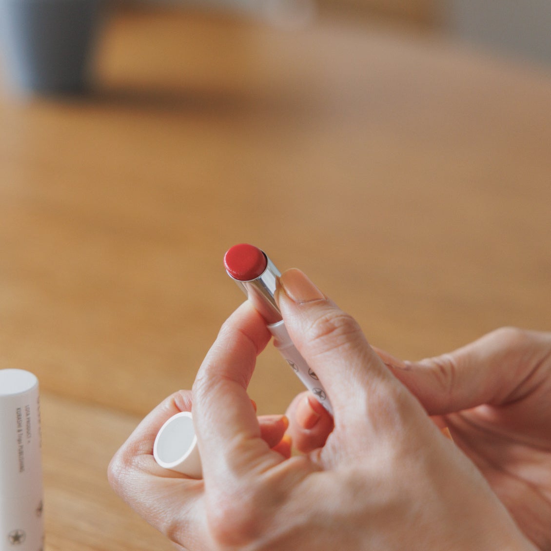 あと、いわゆる口紅とは違うから、唇の乾燥をなおすついでに、道端でもパッと塗れるこの気軽さも好きです。血色をよく見せてくれるくらいに色もつくけれど、鏡を見なくても大丈夫、このバランスがすごくいいなぁと」