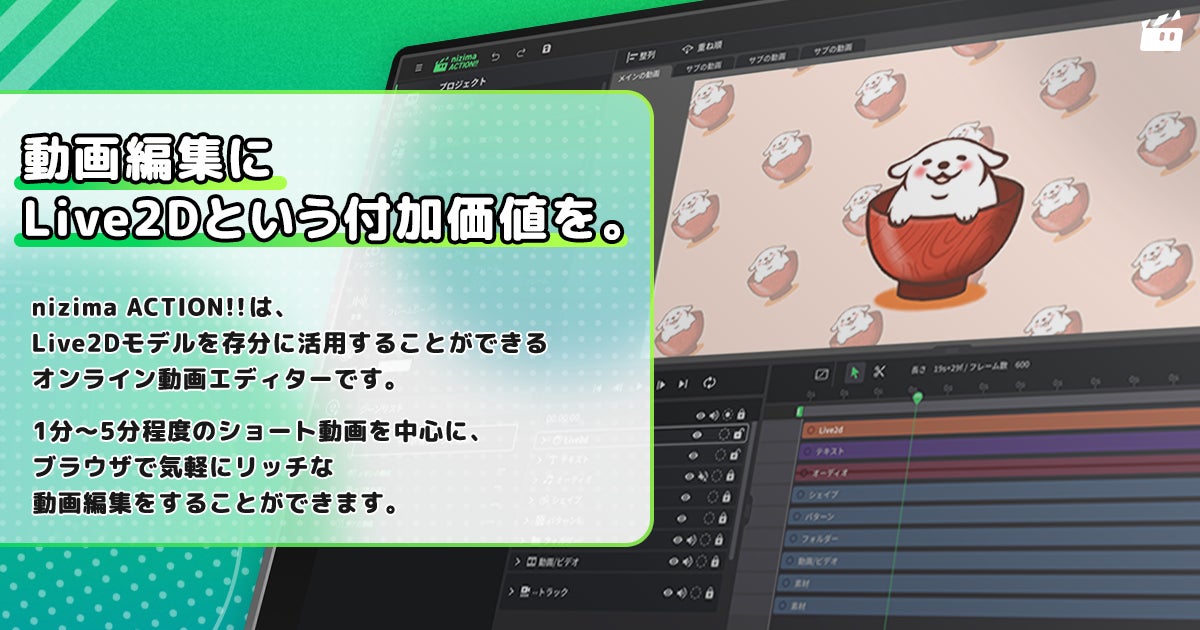 あなたの動画に、命を吹き込む。Live2D社が送る新プロダクト、オンライン動画エディター「nizima ACTION!! クローズドα版」リリース!