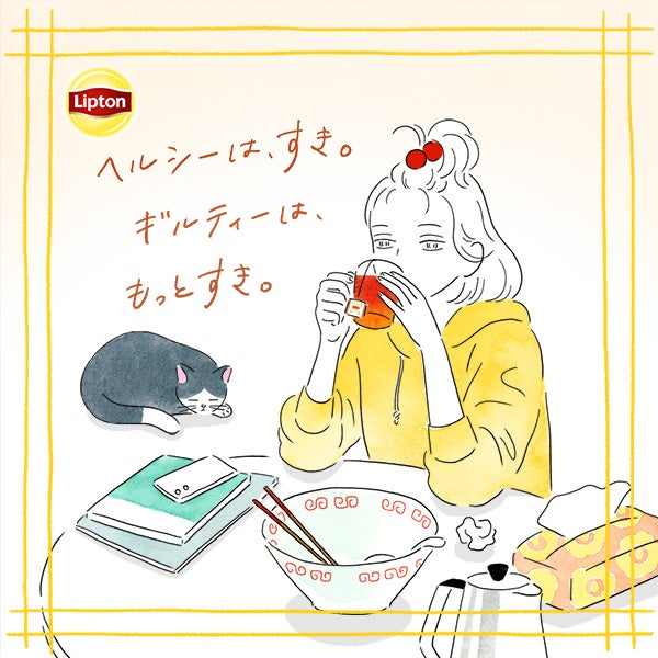 今回のキャンペーンイラストは、人気イラストレーター牛久保雅美さんに書き下ろしていただきました。思わず「そんな日もあるある!」と共感してしまうゆるいイラストの数々を、リプトンの公式SNSの投稿や広告配信でぜひご覧ください。