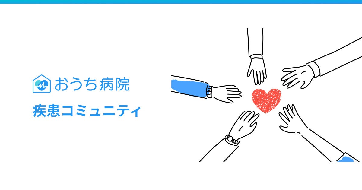 おうち病院 疾患コミュニティは、同じ症状や悩みを抱える患者さん・ご家族がつながり、悩みの共有や情報交換ができるオンラインコミュニティです。登録は無料で、スマートフォンやPCからすぐに参加できます。