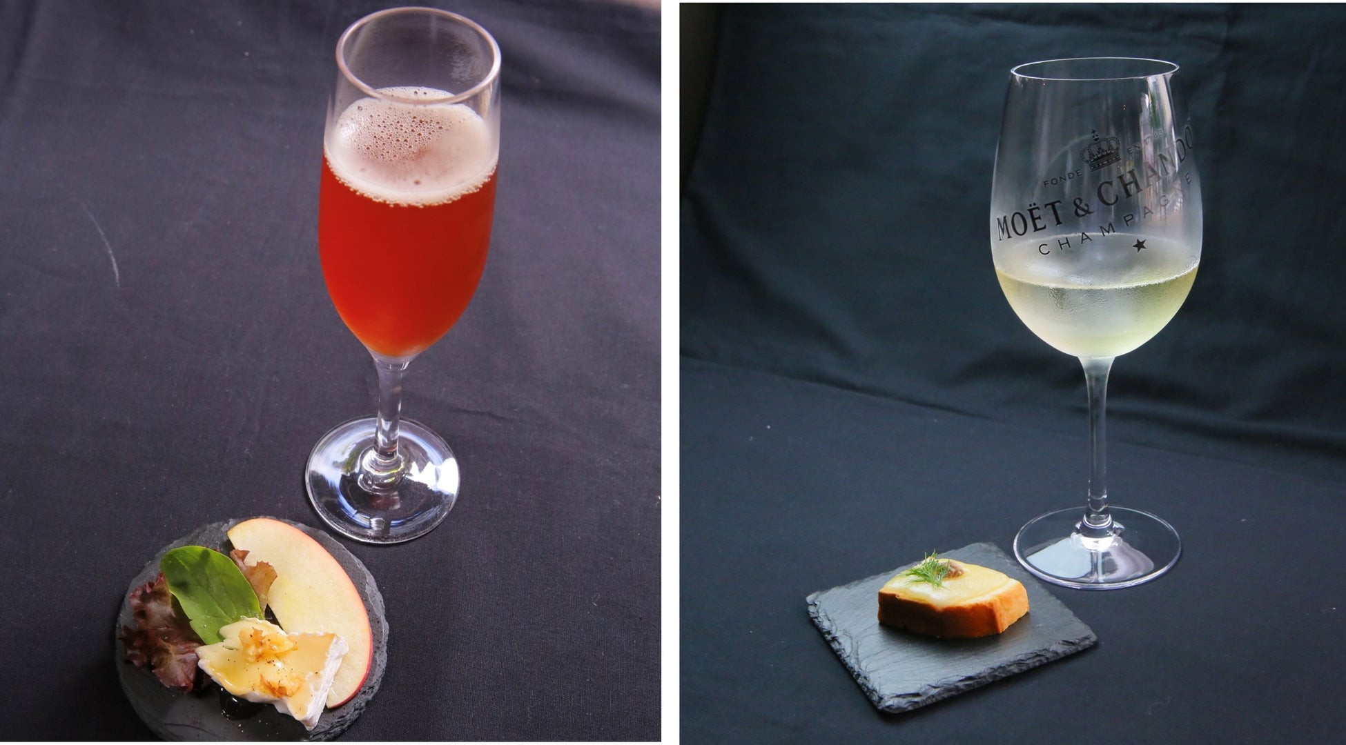 8ヵ月熟成コンテチーズのカナッペ一切れとモエ・エ・シャンドン アイスアンぺリアルグラス1杯のセット。