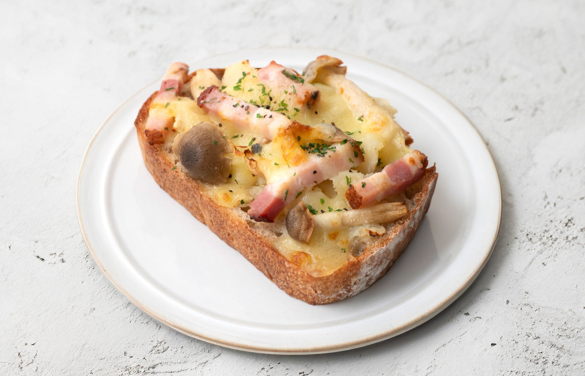 自家製ベーコンとじゃがいもとキノコのチーズオープンサンド 323円 (※)