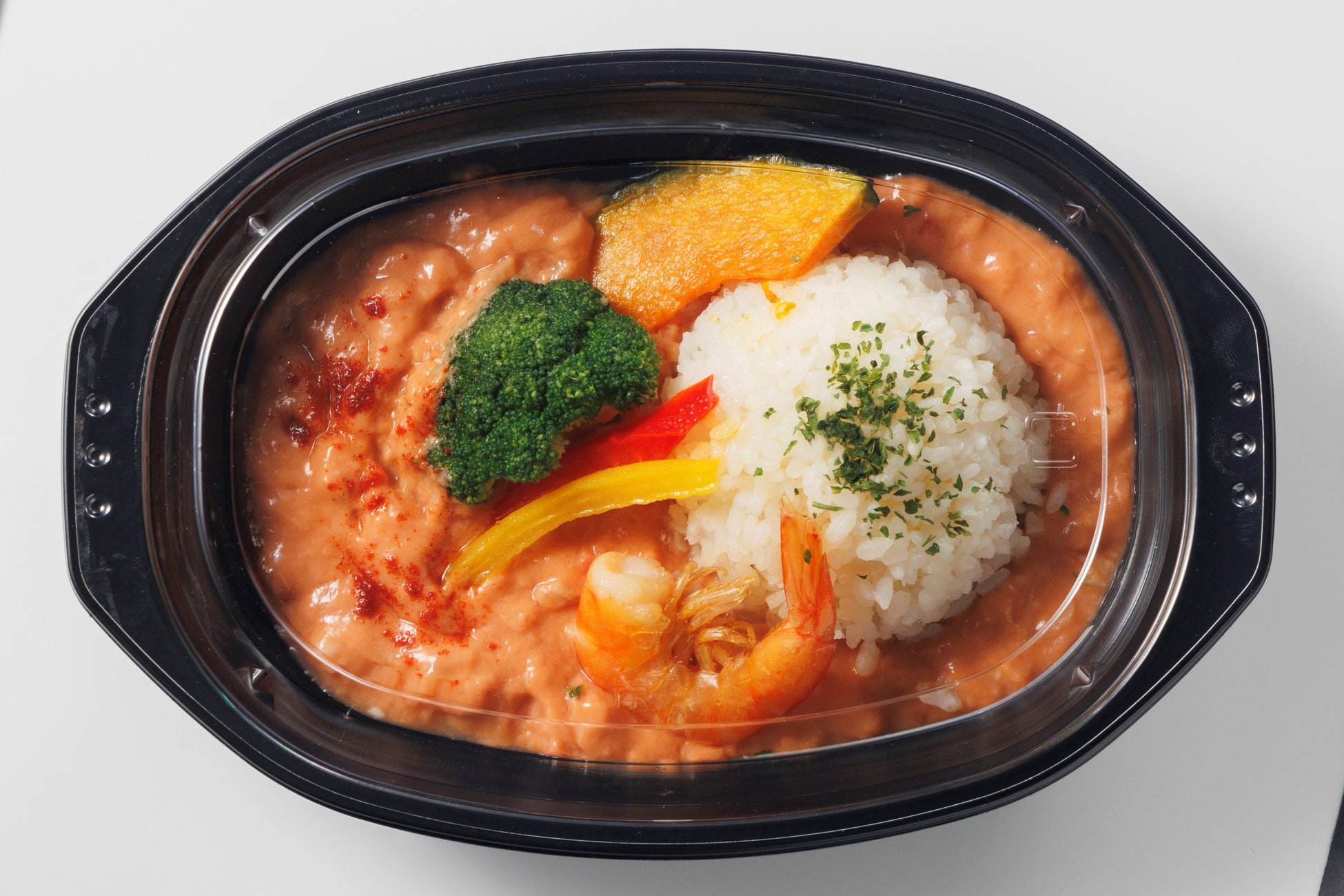 フランス・ブルターニュ地方発祥のビスクスープを成城石井流にアレンジ。濃厚な海老のビスクスープに、少し硬めに炊き上げたバターライスを合わせました。スープには、アメリケーヌソース、フォンドオマール、海老エキス、海老オイルを使用し、濃厚な海老の旨みがしっかりと感じられる仕上がりに。生クリームとパルミジャーノ・レジャーノを使用することでコクを加え、夏でもおいしく召し上がっていただけるようトマトの酸味をプラスしました。温めた後、揚げた殻付き海老やブロッコリー、パプリカ、かぼちゃといった彩り鮮やかなトッピング具材とスープ、バターライスをよく混ぜてお召し上がりいただくのがおすすめです。