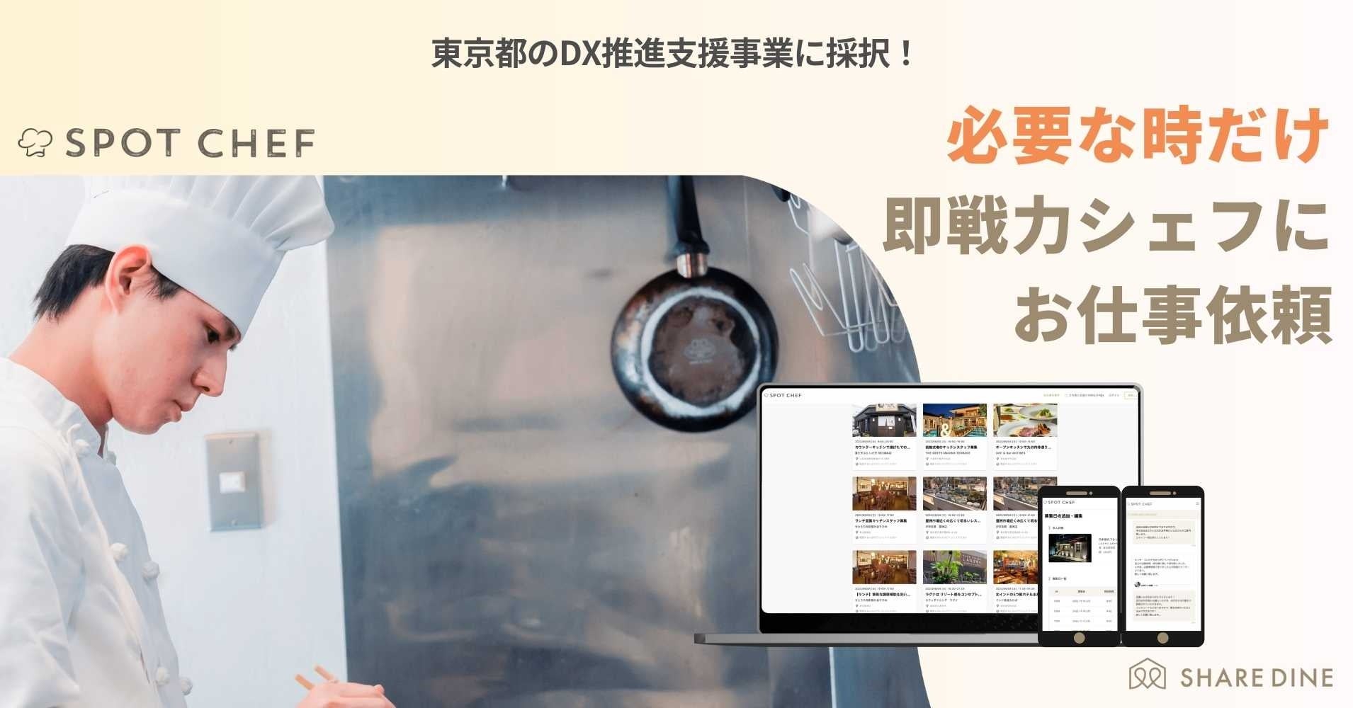 東京都のDX推進支援事業に採択!1回3時間から”スポット"で即戦力料理人を手配可能な新サービス「スポットシェフ」