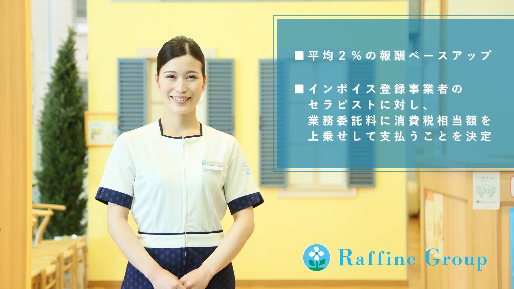 ラフィネグループは、今後もセラピストの働く環境を第一に考え、より⼀層、均⼀かつ質の⾼い技術・サービスを提供していくよう取り組んで参ります。また、インボイス制度を含む法制度の変化に迅速かつ適切に対応し、会社を取り巻く総ての方々にとって共存共栄を大切にすることを目指してまいります。さらに、セラピストとの協力体制を強化し、企業の発展と社会的責任の両立を実現していきます。