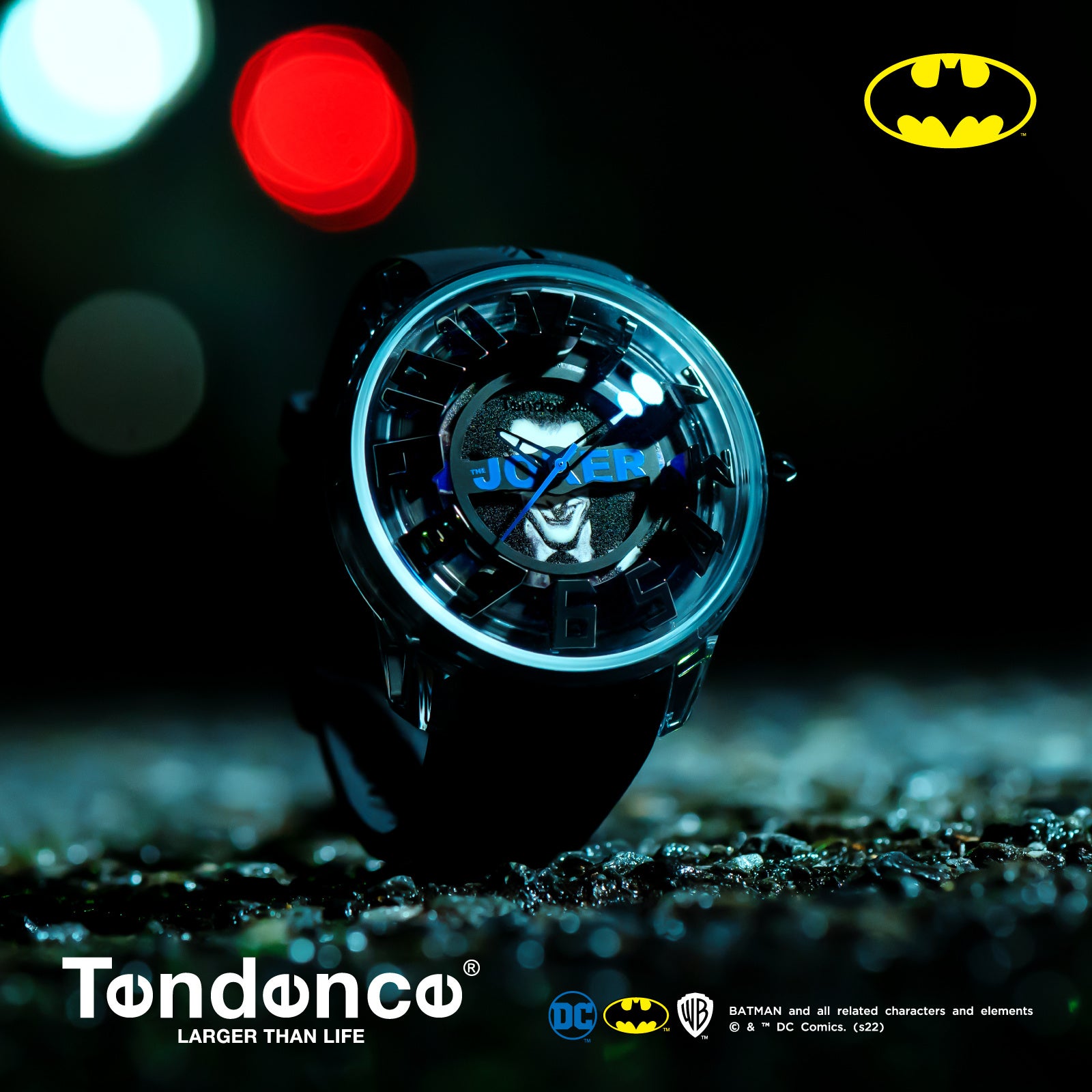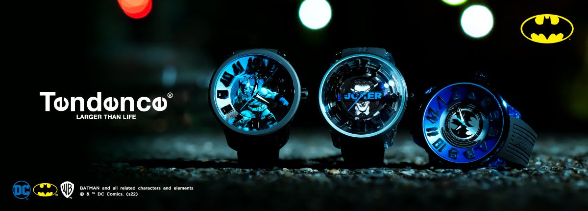 アメリカンコミックスの大手「DC」のキャラクターとして⼈気の⾼い「BATMAN」シリーズのBATMAN、THE JOKERをモーチーフにテーマカラーや世界観を腕時計に落とし込んだユニークなコラボレーションが誕生しました。テンデンスの人気ウォッチをベースにし遊び心あふれるデザインはDCファンだけでなく、映画ファンでも楽しんでもらえます!