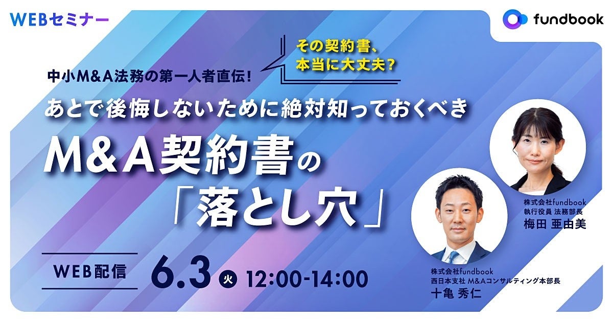 【6/3(火)開催|経営者向け無料オンラインセミナー】「その契約書、本当に大丈夫?」理想のM&A実現のために“絶対”知っておきたい「契約書の落とし穴」を中小M&A法務の第一人者が解説