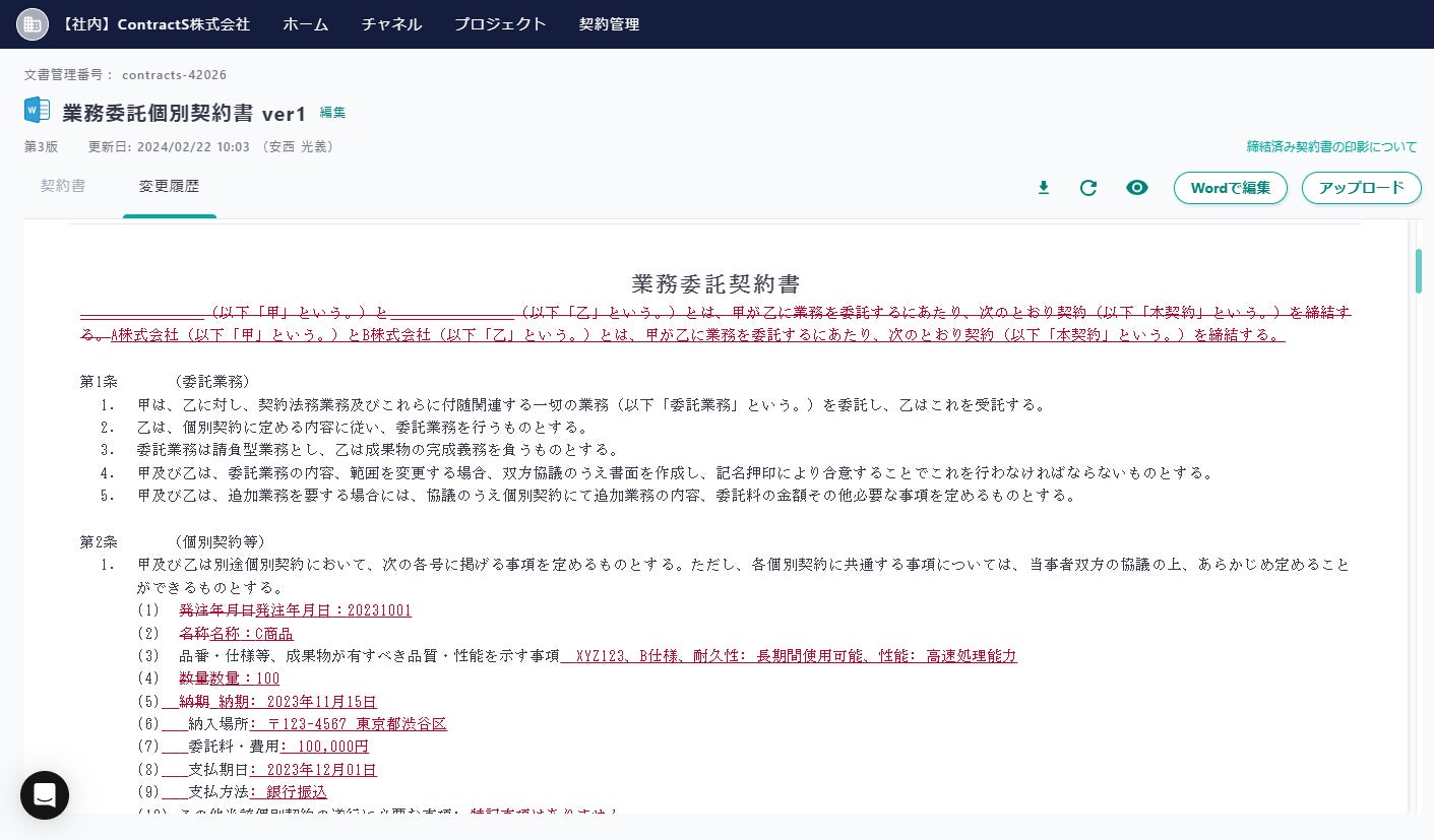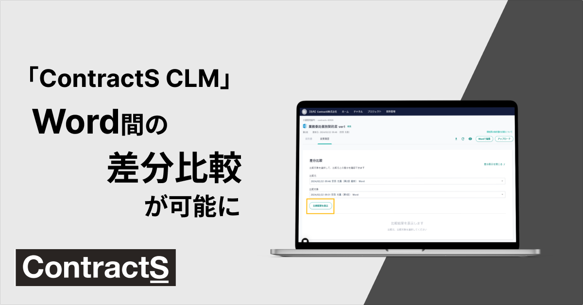 ContractS(コントラクツ)株式会社(本社:東京都千代田区、代表取締役:安養寺 鉄彦、以下 ContractS)が提供する契約ライフサイクルマネジメント(Contract Lifecycle Management、以下 CLM)システム「ContractS CLM」は、Microsoft Word形式のファイル同士での差分比較ができる機能アップデートを行いました。