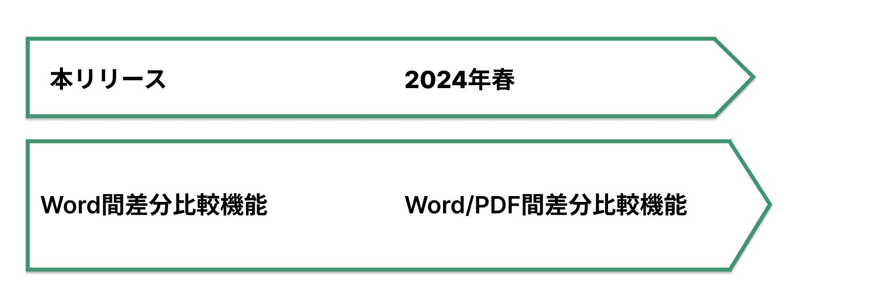 今回のWord間の契約書作成依頼につづいて、Word/PDF間の差分比較機能の開発を予定しております。Word/PDF間の差分比較機能は今年2024年春のリリースを予定しております。