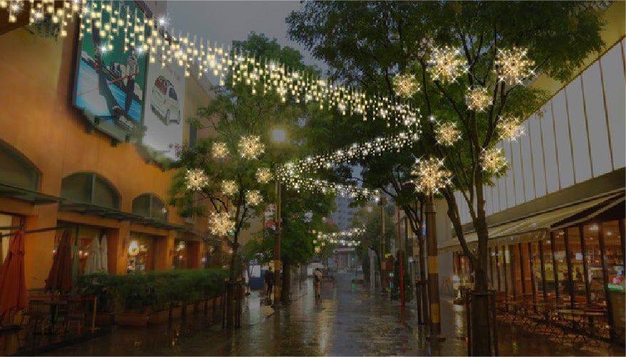 ラ チッタデッラでは、毎冬異なるテーマでイタリアの街並みを彩るイルミネーションを開催しています。今年のイルミネーションのテーマは、『イタリアの街並みを優しく包み込む“FRAGRANCE FORESTS~香りの森~”の輝き』と題し、施設内3か所のゾーンにて、それぞれにテーマ性をもたせた創造的なボタニカル装飾と、今回のために調合された特別な香りを演出し、視覚のみならず、嗅覚や触覚といった感覚でもお楽しみいただける新たな体感型イルミネーションを展開しています。