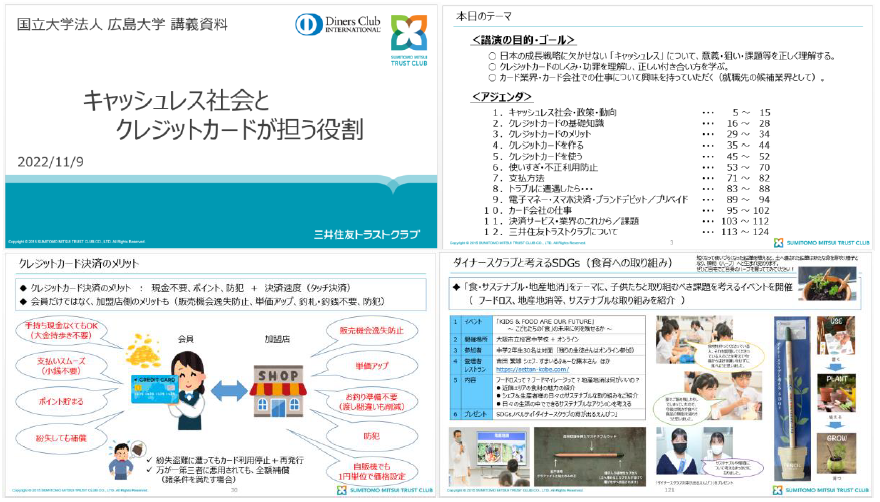 ダイナースクラブカードを発行する三井住友トラストクラブが、クレジットカードやキャッシュレスの仕組みを広島大学で講義