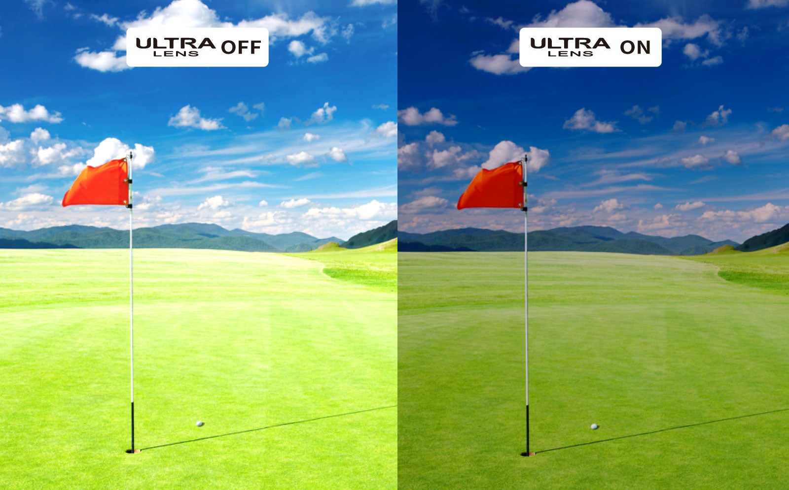 自然な視界色のまま、ボールがくっきりと見えるゴルフ用レンズ。