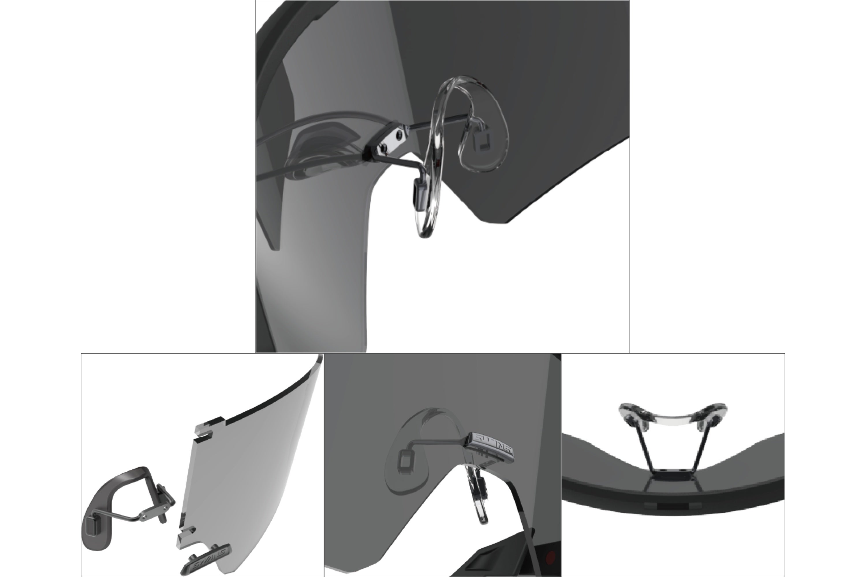 CONTRAIM専用に新規設計・開発されたノーズパーツは、レンズ取り付け部分を可能な限り小型化し、視界を妨げないことに徹底的にこだわりました。