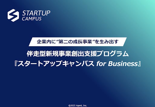 社会の「困った」を解決することをミッションに、「みんなが笑顔になれる社会」を目指す、株式会社エージェント(東京都渋谷区、代表取締役:四宮浩二、証券コード:7098)は、企業内の新規事業開発を支援する12週間の伴走型プログラム『スタートアップキャンパス for Business』の提供を開始しました。