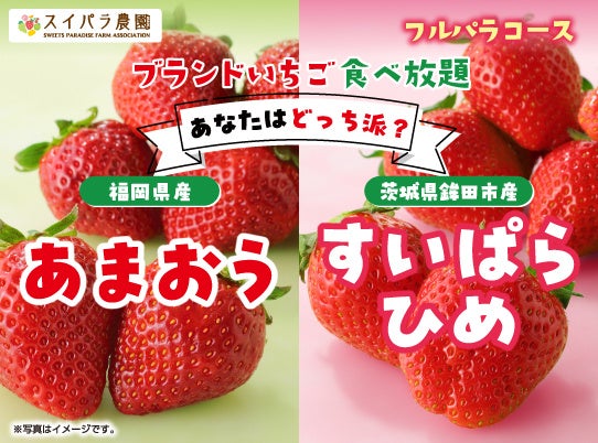 【スイパラでいちご食べ比べ】「あまおう」と「すいぱらひめ」あなたはどっち派?4/10からの「国産ブランドいちご食べ放題」では人気品種の食べ比べを開催!