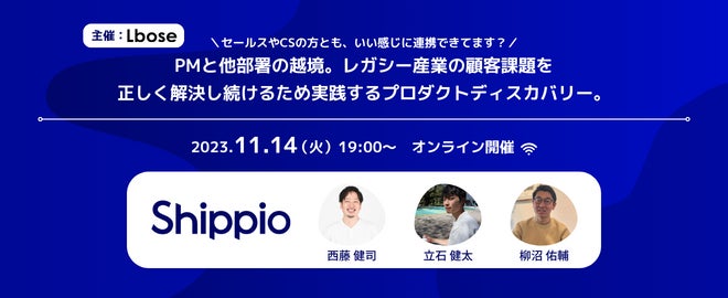 弊社では、開発PMの方向けオンラインイベントを昨年から毎月開催していますが、「シニアPMに聞く!」シリーズの第7弾。「PMと他部署の越境。レガシー産業の顧客課題を正しく解決し続けるため実践するプロダクトディスカバリー。」をテーマにしたLTと相談会を開催します。Shippioの中でPMの方がセールス、CS、ドメインエキスパートなどの他職種とどのように連携しているのか深ぼってお話しします。