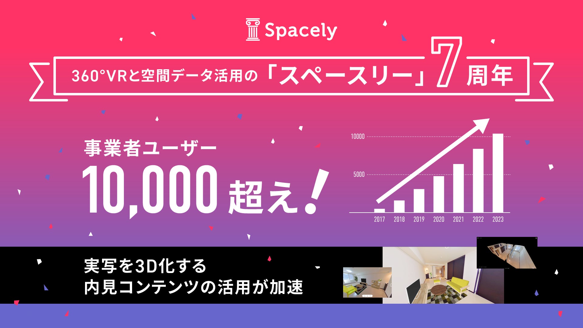360°VRと空間データ活用の「スペースリー」が7周年で事業者ユーザー数10,000超え!実写を3D化する内見コンテンツの活用が加速