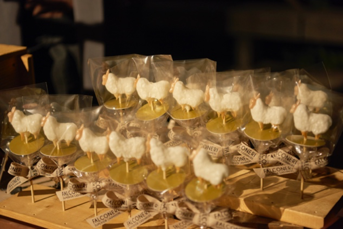 パーティでは、ファルコネーリドリームを実際に体現いただける展示やカシミヤヤギをモチーフにした飴細工など、ファルコネーリの商品のルーツを身近に感じることができるコンテンツも喜ばれました。