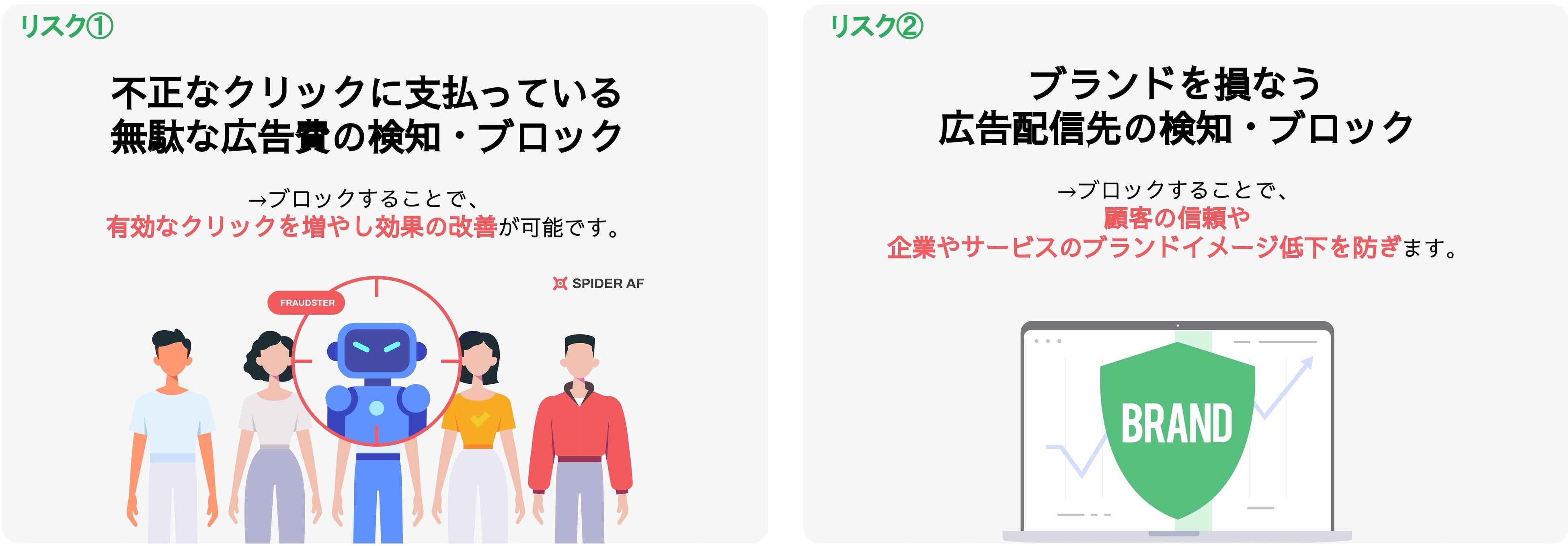 | 事業内容 | インターネット広告の課題である無駄なインプレッションやクリックにより、 広告費用が不正に搾取されるアドフラウドを検知・ブロックするSpider AFの開発・提供。 |