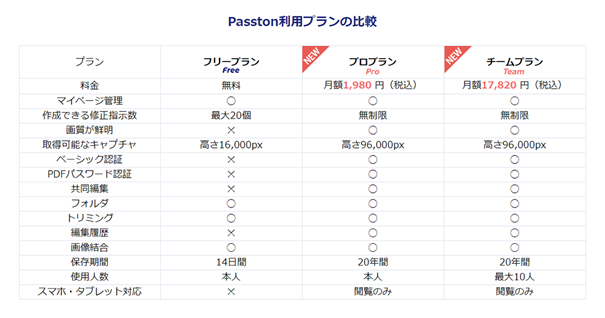 「Passton」は、WEB制作の過程において、添削・校正に膨大な工数がかかっている、修正指示の管理に手間がかかっている、印刷物が多く困っているなどの課題を解決するために開発された修正指示ツールで、本年2月に無料プランの提供を開始しました。このたび、多くの利用者から得たフィードバックをもとに改善を図り、新たな機能やサービスを追加した有料プランをご用意しました。