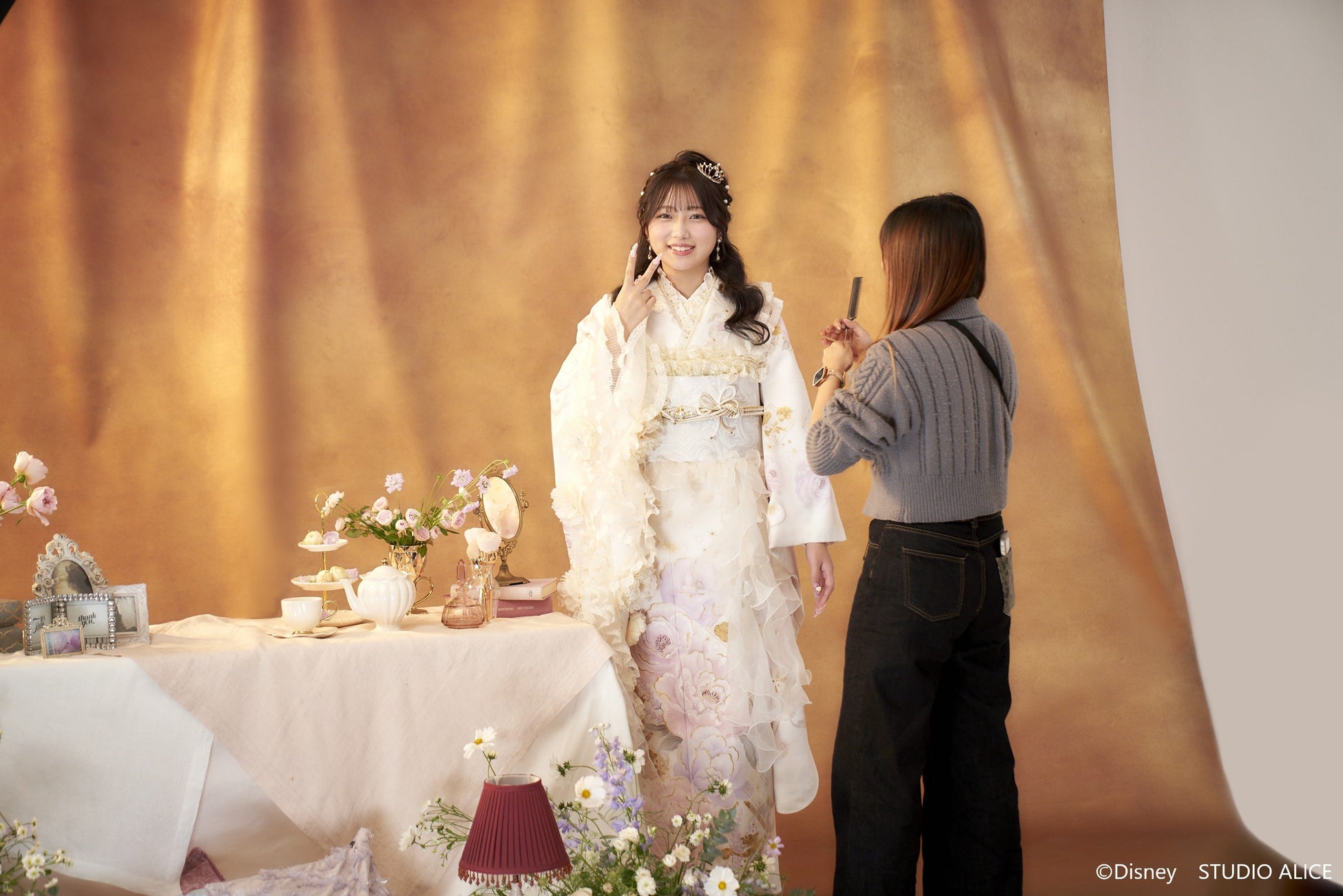 希空さんは幼少期からスタジオアリスで撮影経験があり、今回のコラボレーションでは、ご自身の“好き”や“挑戦したい世界観”を反映しながら、4LOOKの振袖撮影に参加していただきました。