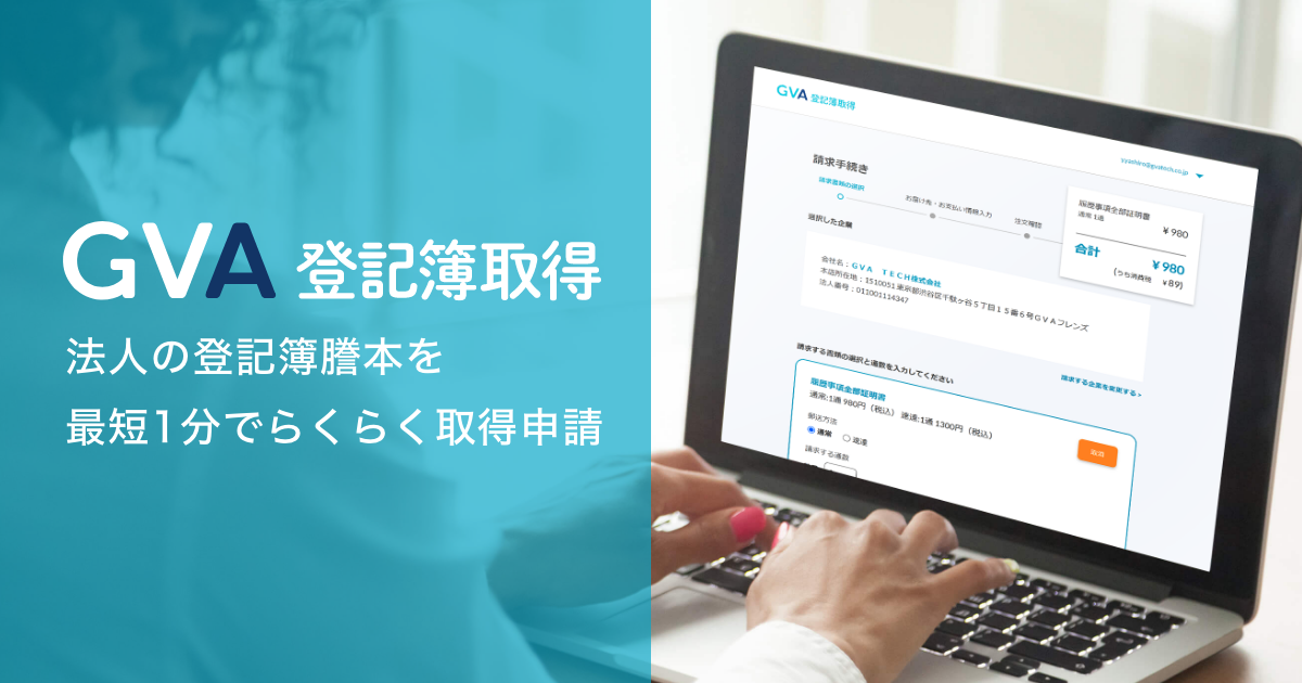 リーガルテックサービスの開発・運営を行うGVA TECH株式会社(本社:東京都渋谷区、代表取締役:山本俊、以下GVA TECH)は、法人の登記簿謄本取得オンラインサービス「GVA 登記簿取得」が、法務省の提供する登記・供託オンライン申請システムと連携したことをお知らせいたします。