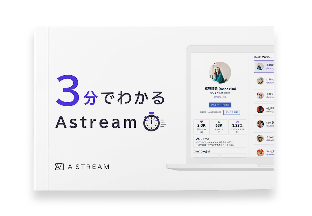 Astreamはこれまで取得不可能であった、インフルエンサーのフォロワーの”興味関心”や”ブランドの好み”といったサイコグラフィック情報の分析を可能にする、次世代SNSマーケティングツールです。