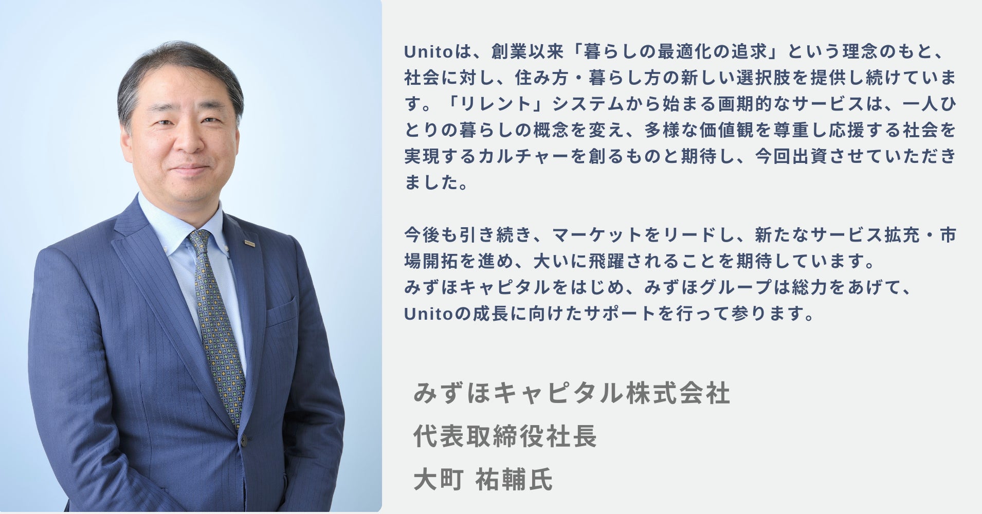 株式会社Unito(本社:東京都千代田区、代表取締役:近藤 佑太朗、以下「Unito」)は、既存投資家の株式会社ベクトルに加え、新規投資家であるHAKUHODO DY FUTURE DESIGN FUND、大東建託株式会社、みずほ成長支援第5号投資事業有限責任組合を引受先とする第三者割当増資により、シリーズCラウンドで総額3.5億円の資金調達を実施したことをお知らせいたします。