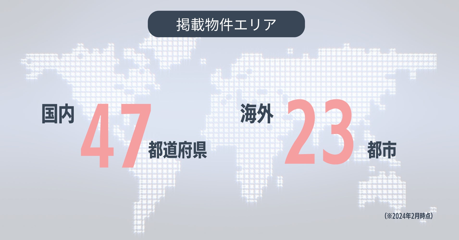 最短即日・スマホ契約が可能な家具家電付きのお部屋を探せるプラットフォーム「unito」の物件掲載エリアは国内47都道府県、海外23拠点へと拡大し、国内外を問わないフレキシブルな暮らしの提供へと前進しています。本年はさらに掲載エリアの拡充を予定しています。