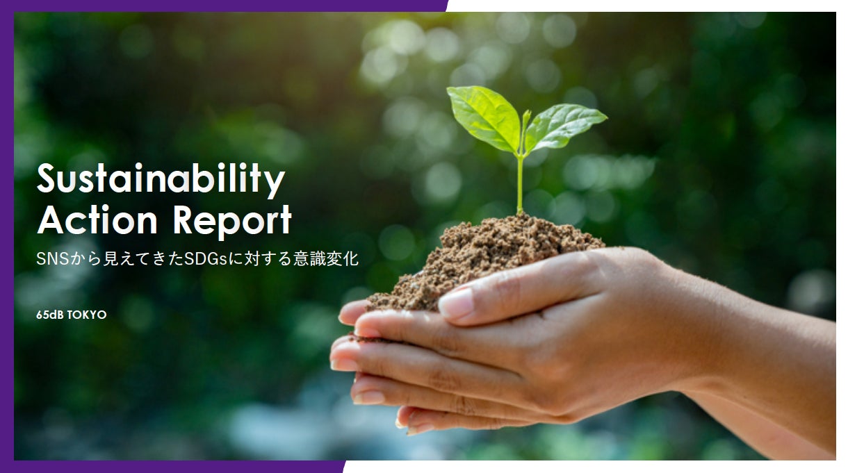 SNS上のソーシャルボイスを分析し、企業のマーケティング支援を行う「65dB TOKYO」は、生活者は実際のところSDGsについてどのように考えているのか、SNSを通じた「生活者の本音」に、企業のSDGsアクションを加速させるヒントがあるのではないかと考えました。そこでこの度、SNSから見えてきた生活者の生の声を、企業のSDGsアクションのヒントとして活用していただくことを目的に「Sustainability Action Report」を制作いたしました。