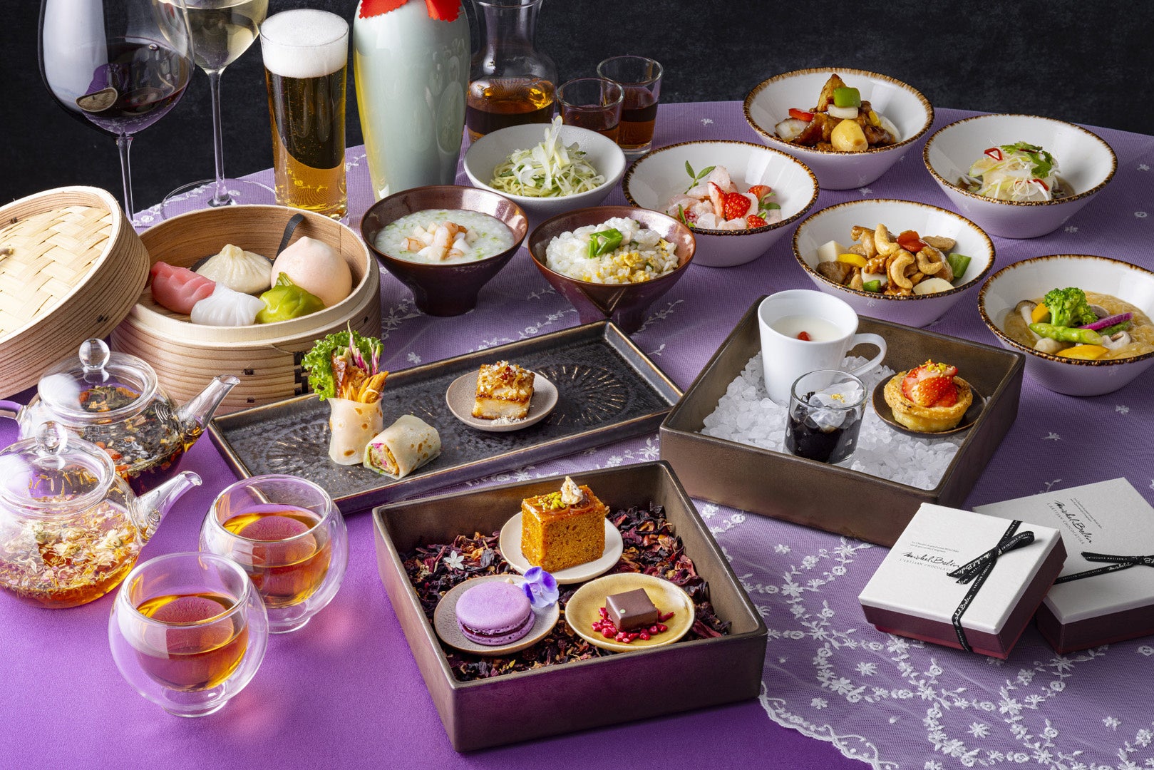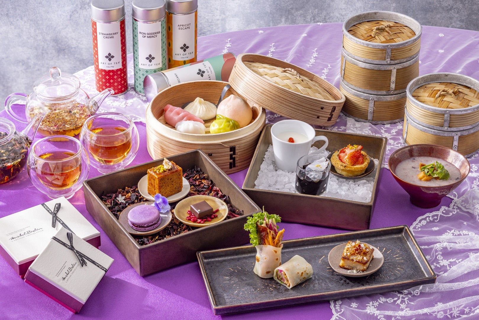 ミッシェル・ブラン氏が贈るスイーツ3種類と「王朝」特製スイーツ3種類に加えて、北京ダックロールを含むセイボリー3種類と、熱々のままお席までお届けする点心5種類を心ゆくまでお楽しみいただけます。ロサンゼルス発のプレミアムティーブランド「ART OF TEA」から、季節ごとに厳選した中国茶6種類とご一緒に、優雅なひとときをお過ごしください。