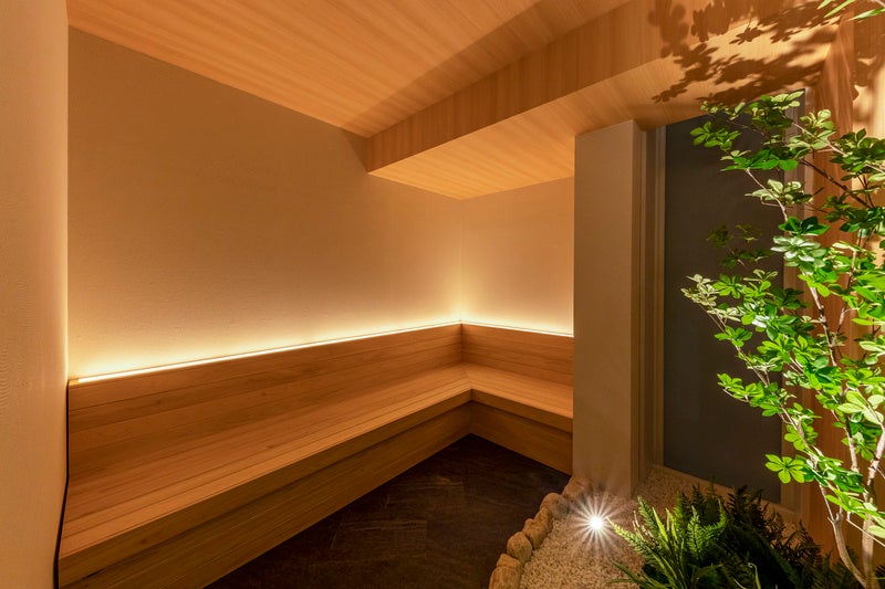個室サウナではセルフロウリュウが可能。また、室内にはスピーカーの接続が可能なため、自分の好きな音楽を聴きながらお過ごしいただけます。