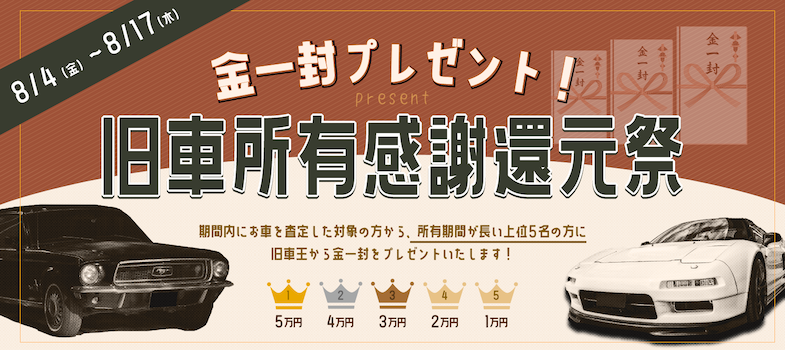 金一封プレゼント!旧車所有感謝還元祭