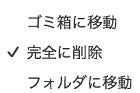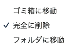 ゴミ箱に移動、完全に削除、フォルダに移動