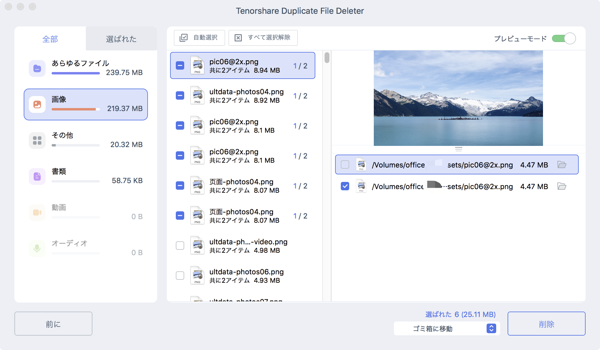 手順4:重複ファイルのプレビューと削除