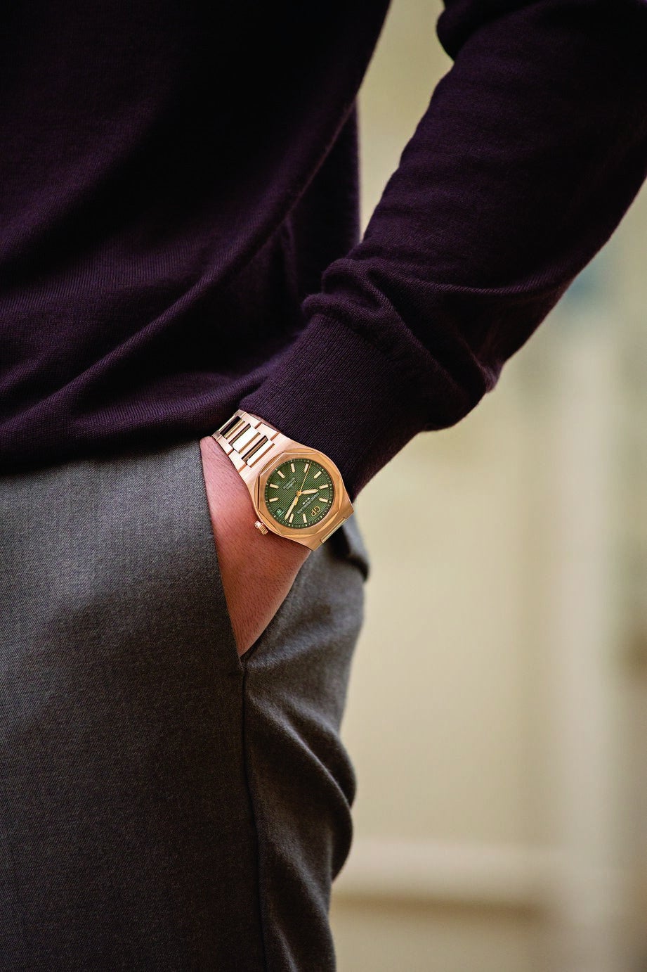 実際に、ジラール・ペルゴは、230 年に及ぶ豊かな経験から得られた深い叡智を持つことで知られ、まさに新しいロレアート ピンクゴールド セージグリーンの文字盤カラーはふさわしい選択と言えます。