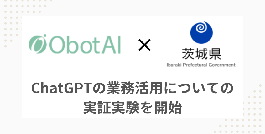 ObotAIは、この度、茨城県の「DX推進プロジェクト」に参画し、ChatGPT利⽤による作業時間の短縮効果など、ChatGPTの有用性の検証を行います。